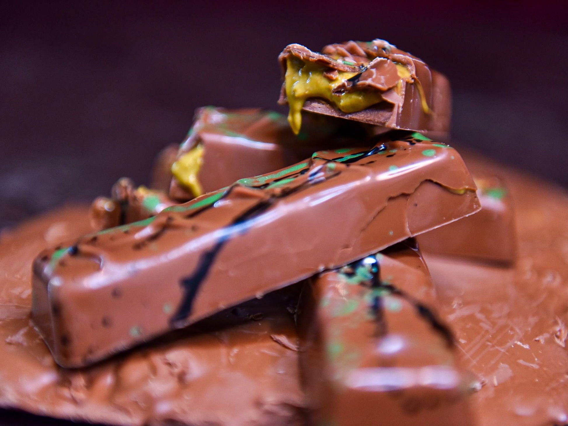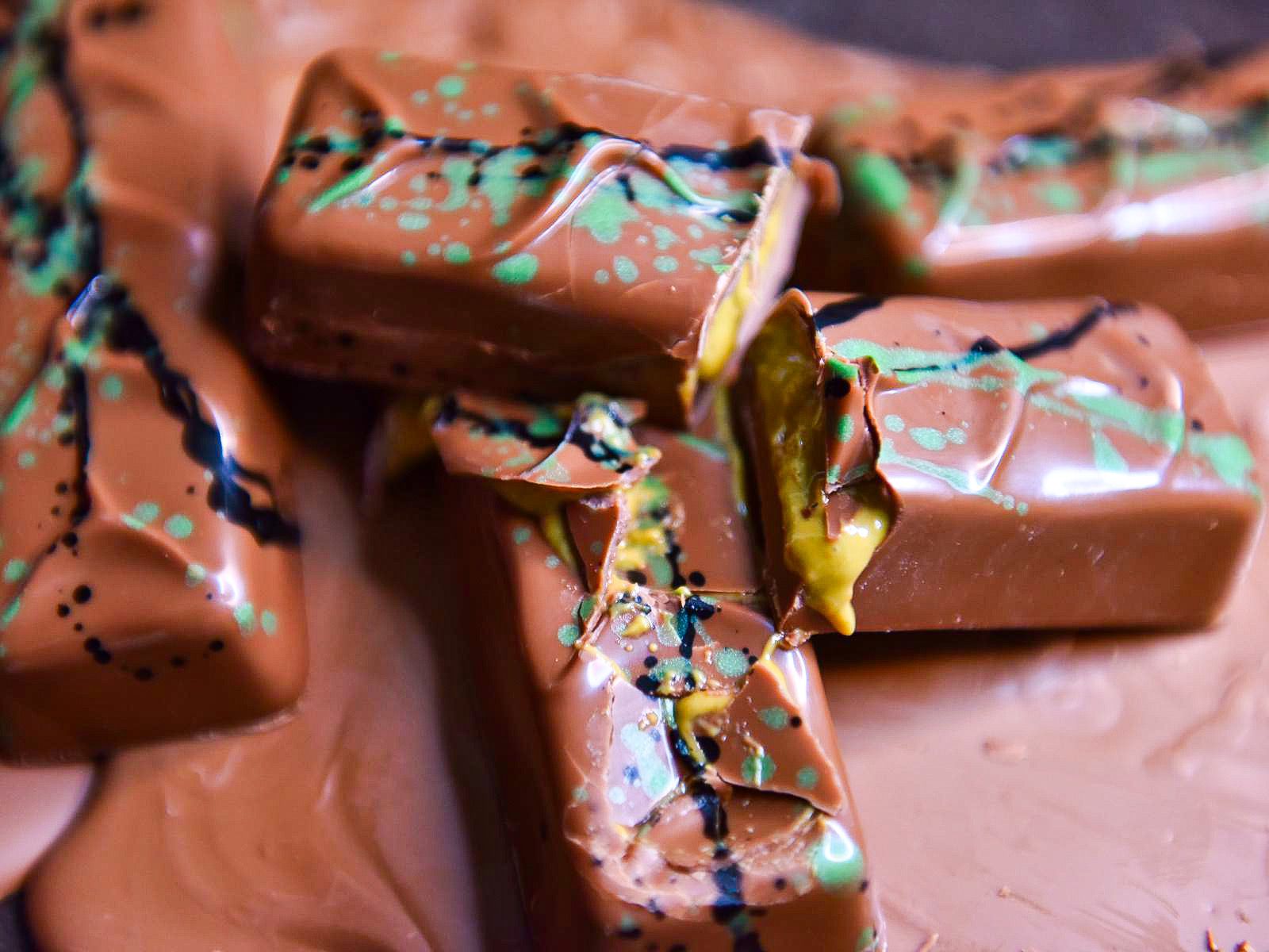 A viral milk chocolate bar filled with a pistachio cream and crispy kataifi (shredded phyllo pastry) filling, inspired by the Middle Eastern dessert knafeh.